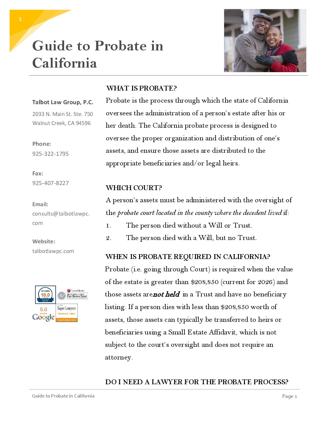 Also known as a “Medical Power of Attorney” and “Living Will,” the Advance Healthcare Directive allows you to appoint an agent to act on your behalf in regards to medical affairs. It also specifies your wishes for care and life prolonging treatment. Mr. Talbot addresses why the Advance Healthcare Directive is essential for residents of the SF East Bay.